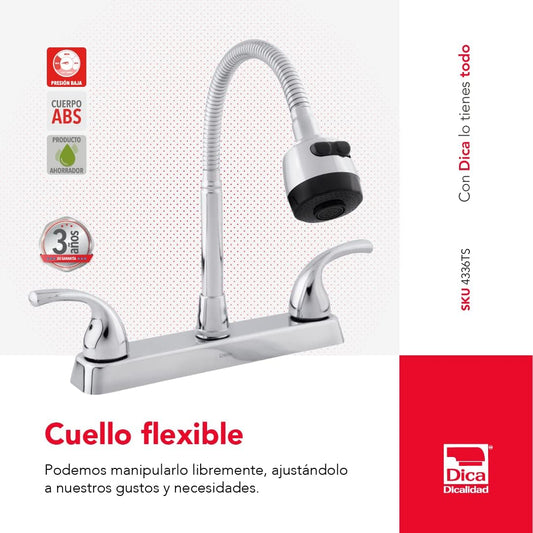 Mezcladora Cuello Flexible 8" Para Fregadero 4336TS