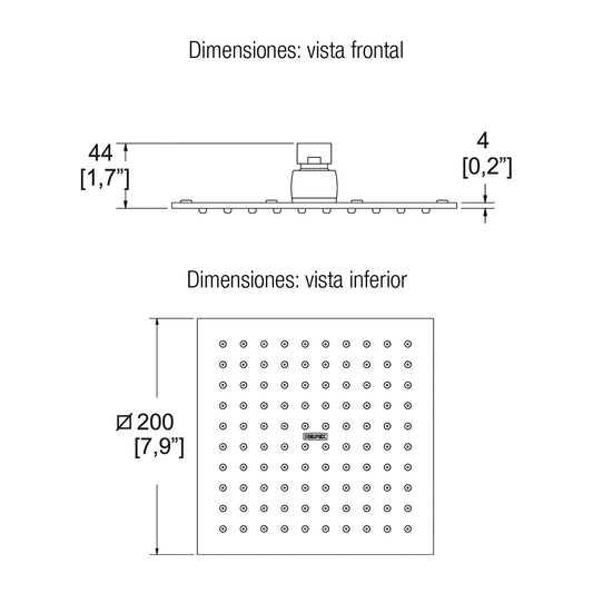 Regadera Redonda De 8" Con Brazo Negro Mate 4518R.2