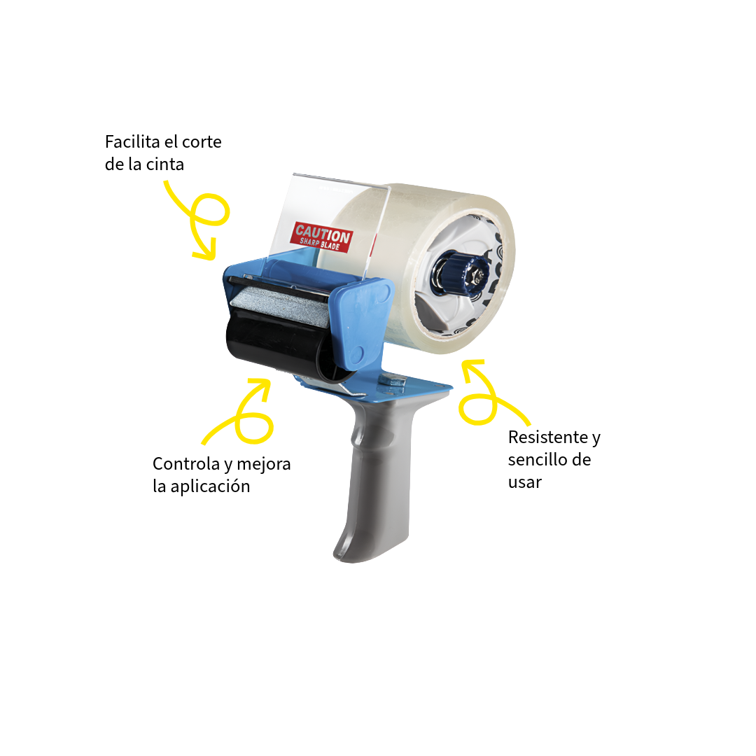 El aplicador de cinta de empaque es la mejor herramienta para la aplicación de cinta adhesiva de forma manual, es ideal para optimizar los tiempos del cerrado de cajas o paquetes. Se puede controlar la cantidad de cinta al aplicar.