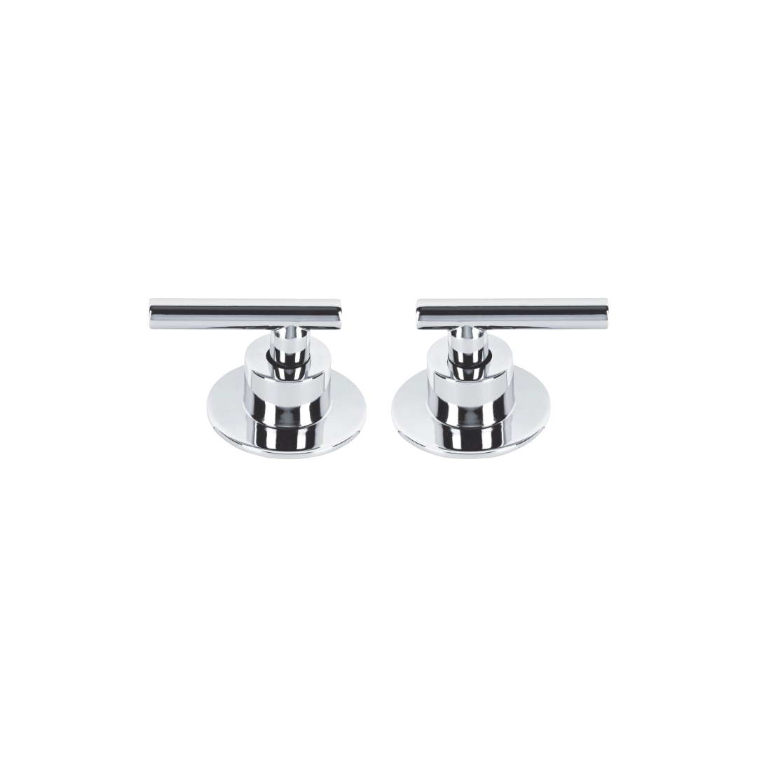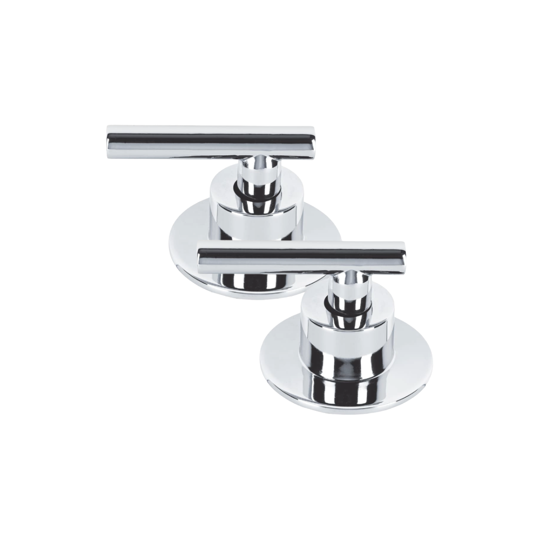 Ideal para quienes buscan un de diseño vanguardista y duradero. Este juego incluye los dos manerales necesarios (agua fría y caliente) listos para una instalación que elevará instantáneamente la sofisticación de cualquier espacio.
