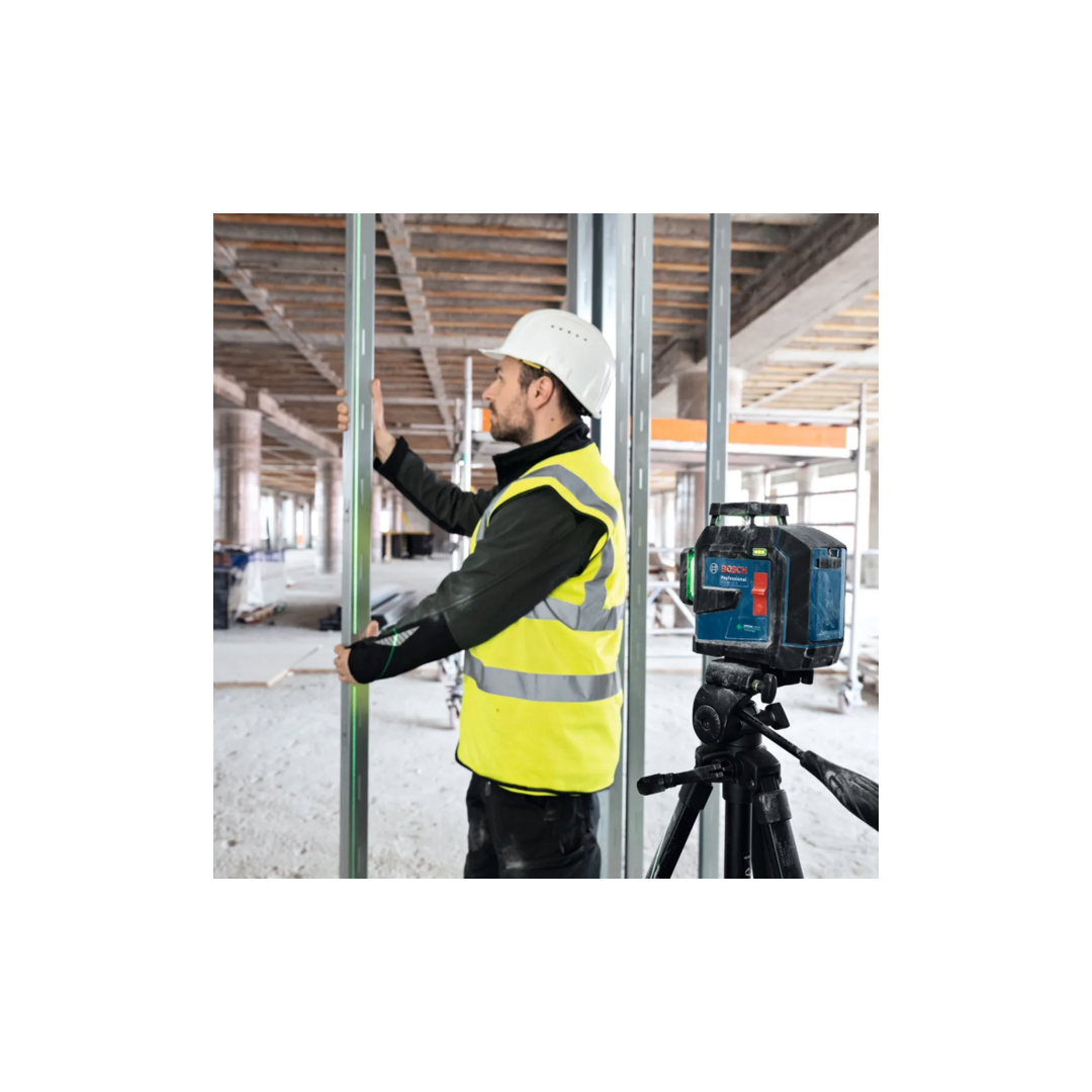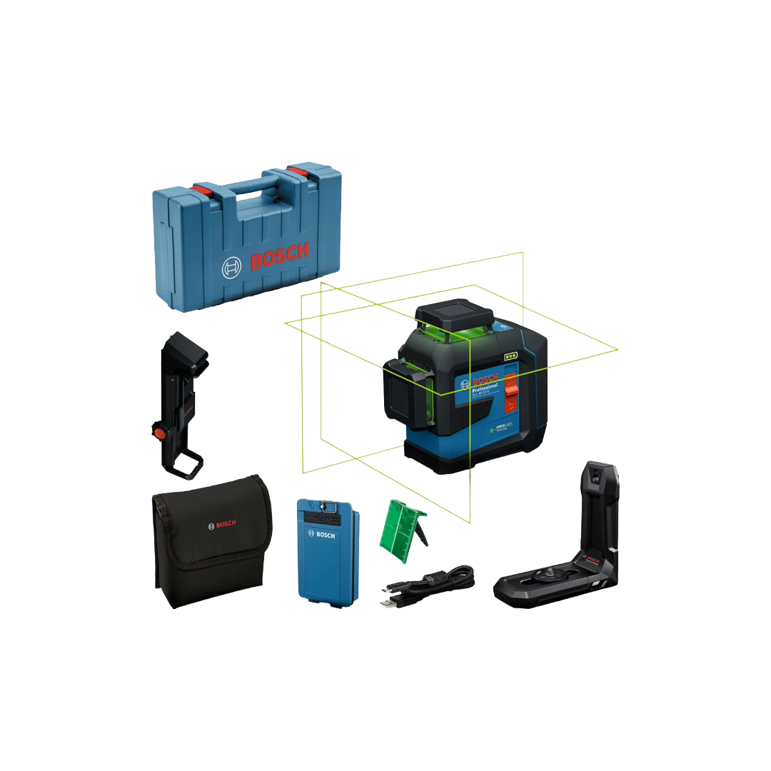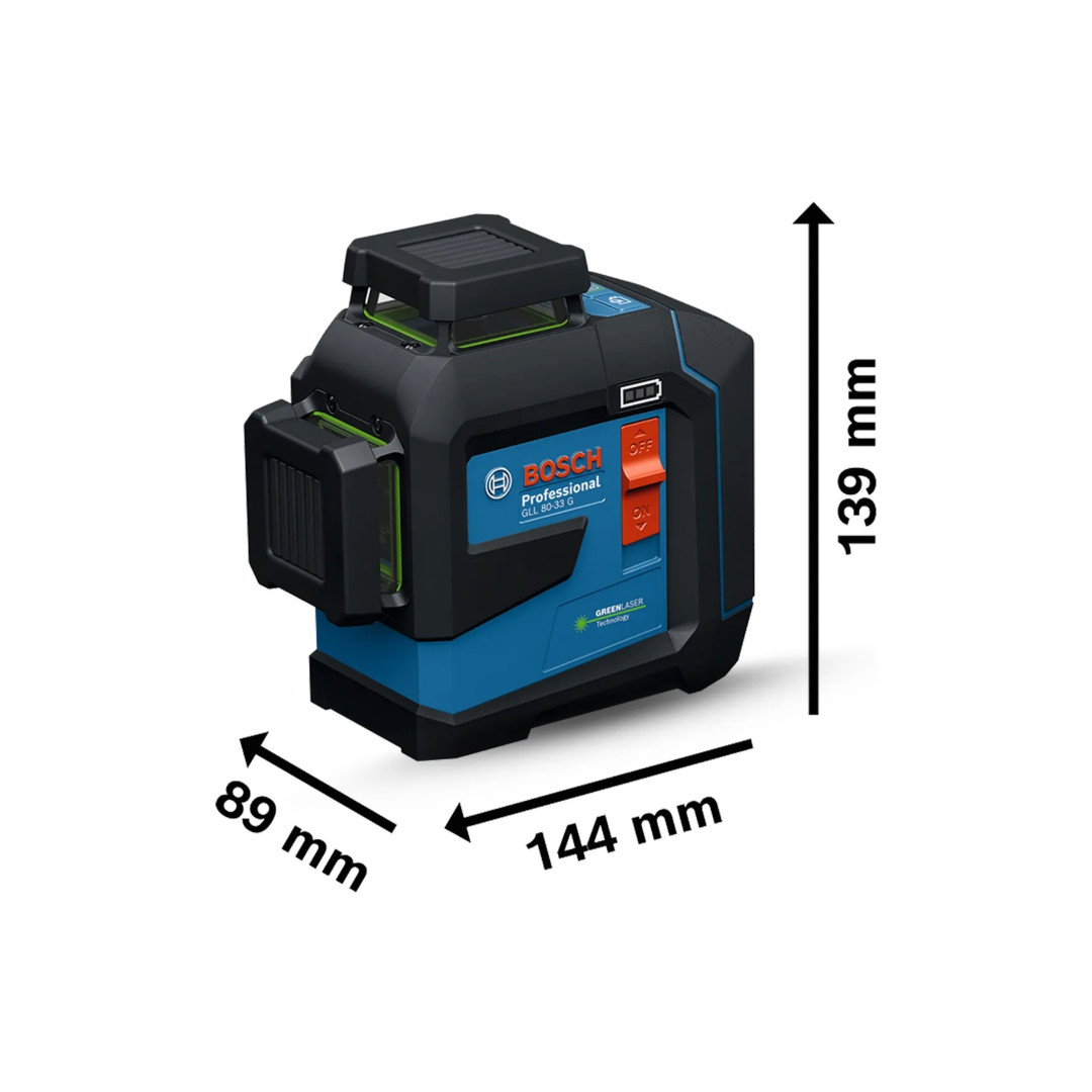 El Nivel Láser Bosch GLL 80-33 G proyecta 12 líneas verdes brillantes de alta visibilidad (una horizontal y dos verticales de 360°), ofreciendo precisión y cobertura total para nivelación, alineación y plomeo en interiores. Su tecnología de autonivelación automática garantiza resultados exactos incluso en superficies irregulares, mientras su diseño robusto con protección IP54 lo hace ideal para condiciones de obra.